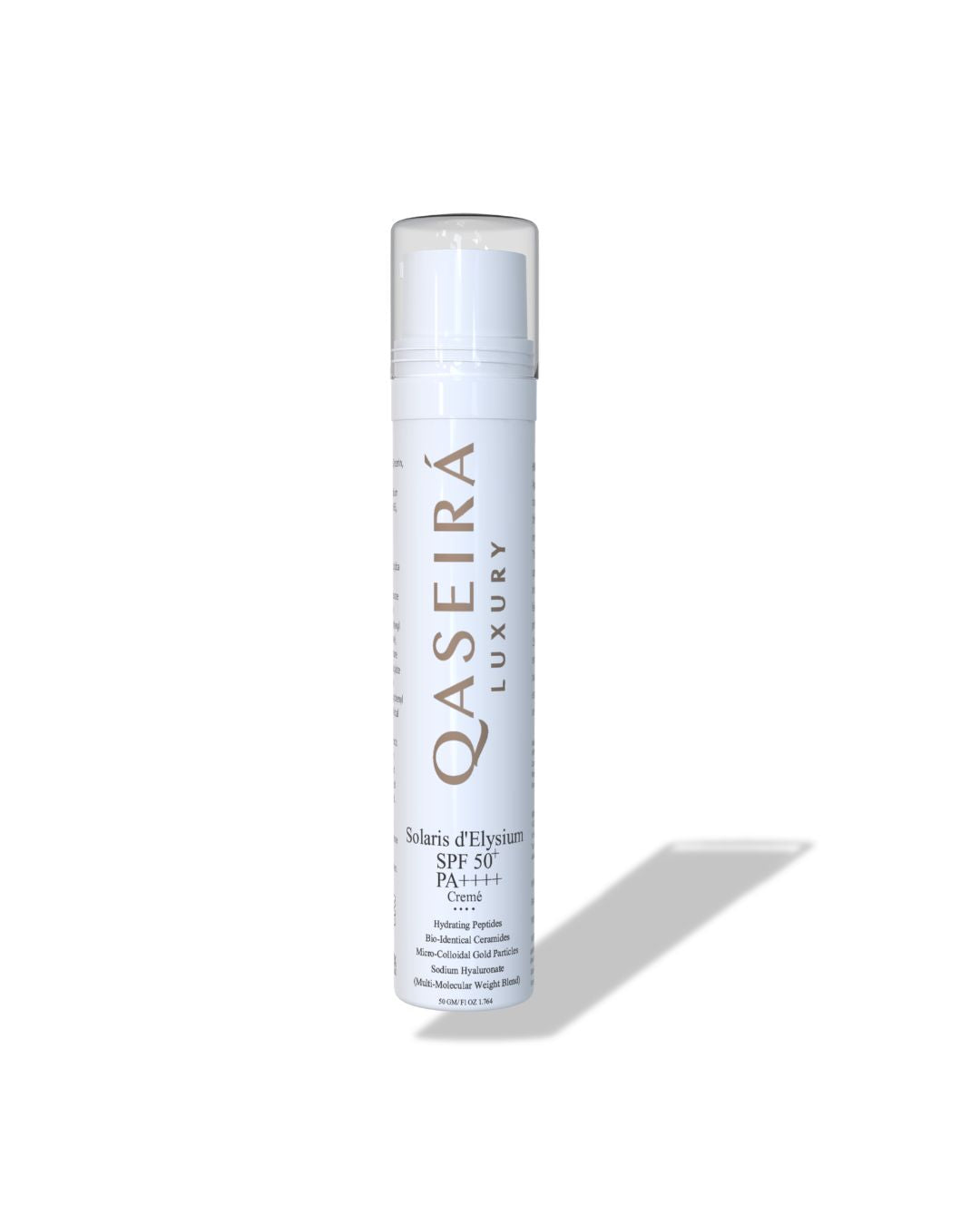 The Solaris d'Elysium SPF 50+ Leave-On Skin Treatment is the pinnacle of luxury sun care, transforming your daily defence into a continuous treatment designed for Cellular Longevity and Exquisite Radiance. This rich yet non-greasy formula provides uncompromising SPF 50+ protection while infusing the skin with essential lipids, barrier fortifiers, and the ethereal luminescence of Micro-Colloidal Gold.